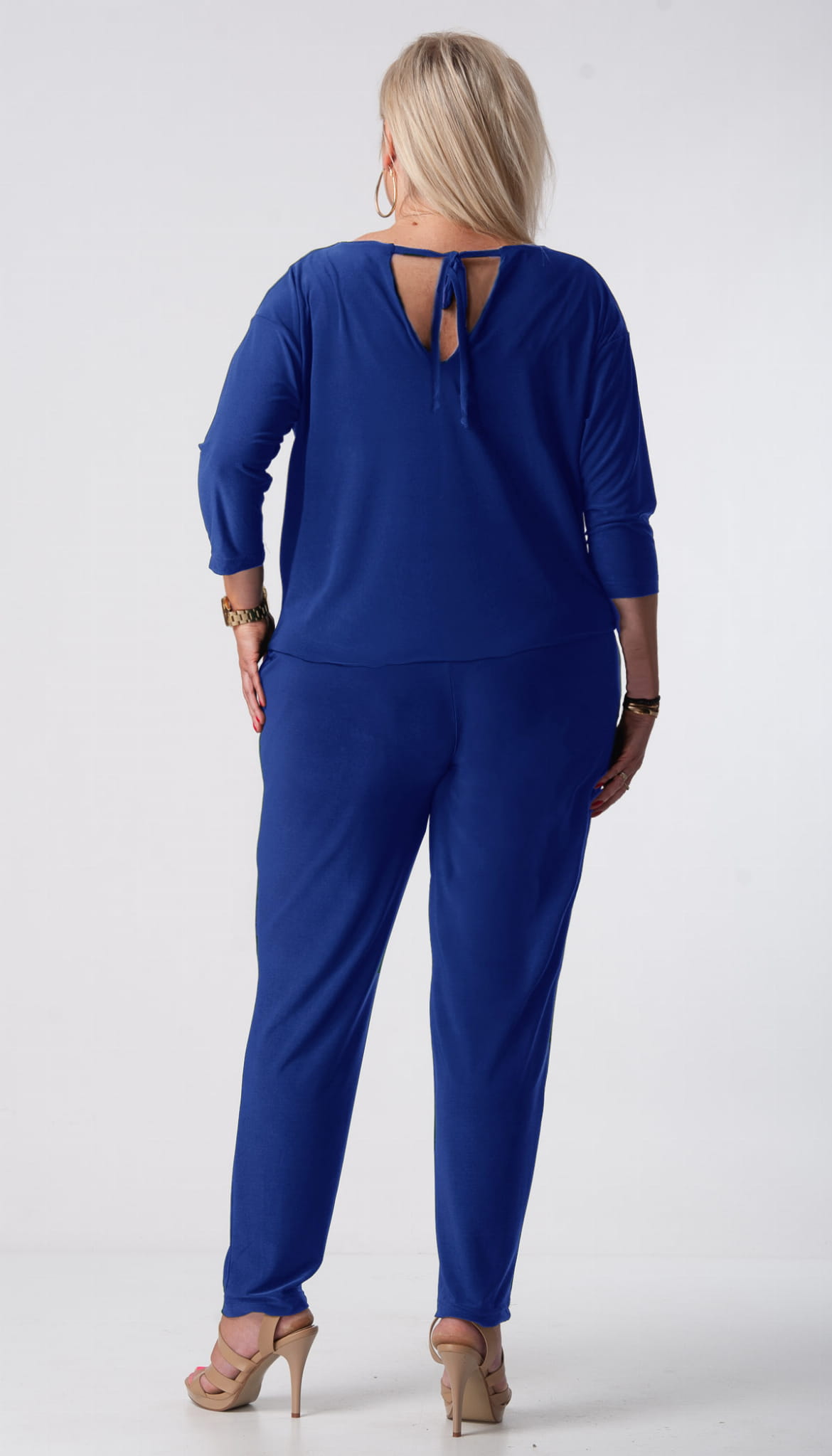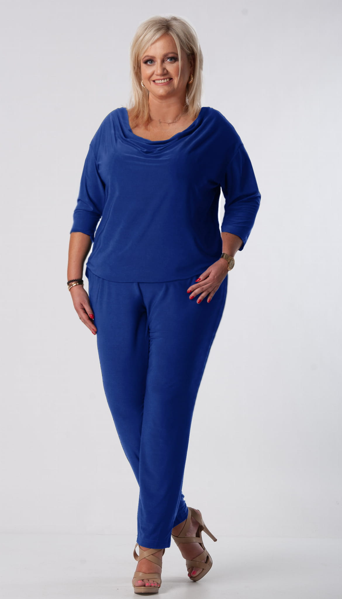 Piękny, lejący, kimonowy, uciągliwy damski kombinezon ze zwężanymi nogawkami. Uszyty z przyjemnego, lejącego, doskonałego na każdą porę roku nieprześwitującego i elastycznego materiału. Bardzo wygodny w noszeniu. Kombinezon, spodnium szyjemy w rozmiarach od 44 do 54.