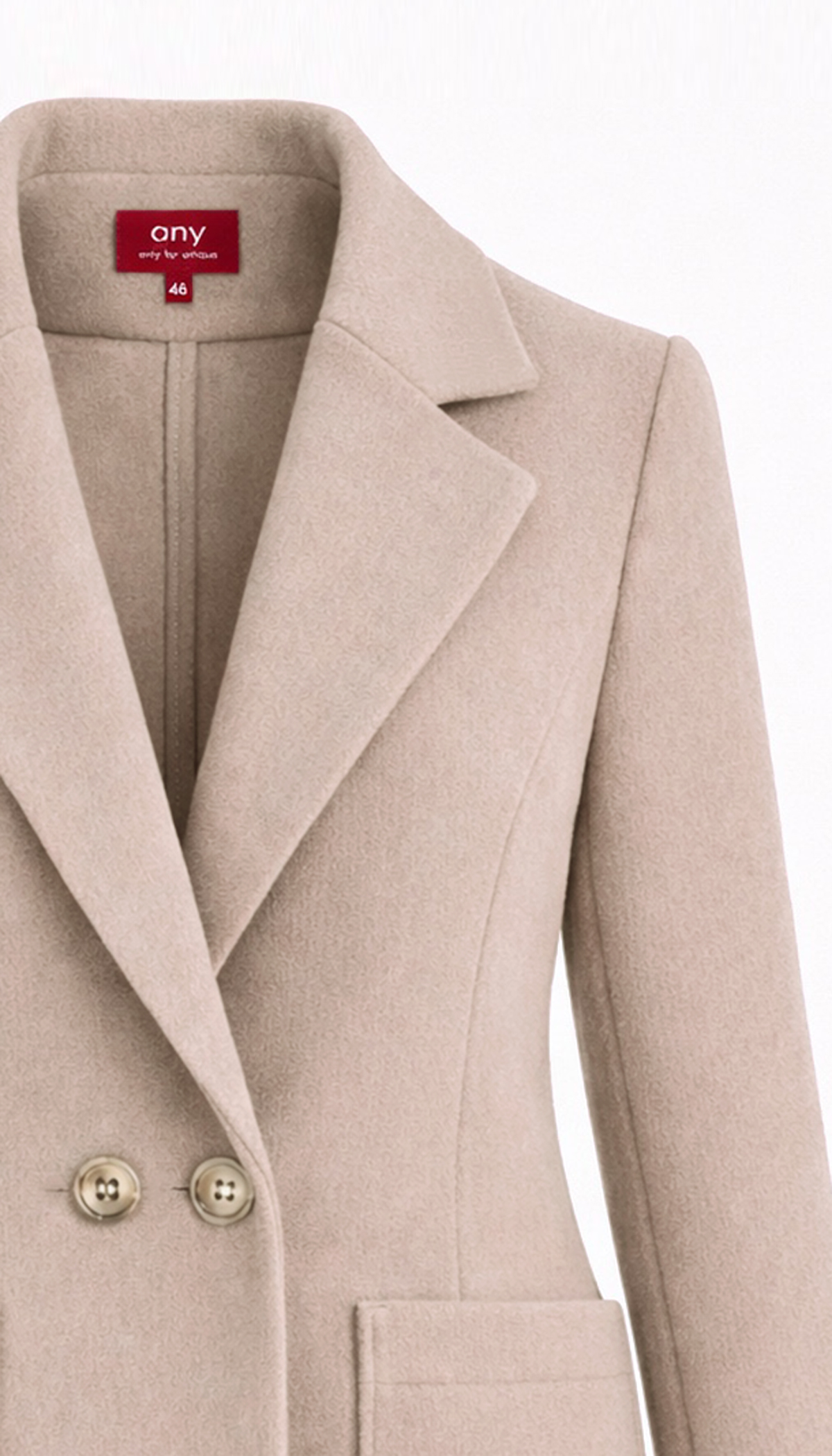 ✅Płaszcz posiada zaszewki modelujące oraz starannie wykończenie brzegów oraz kołnierzyka i kieszeni.