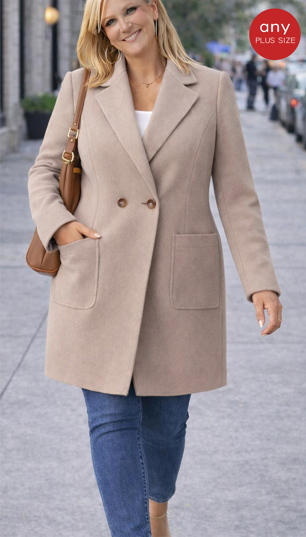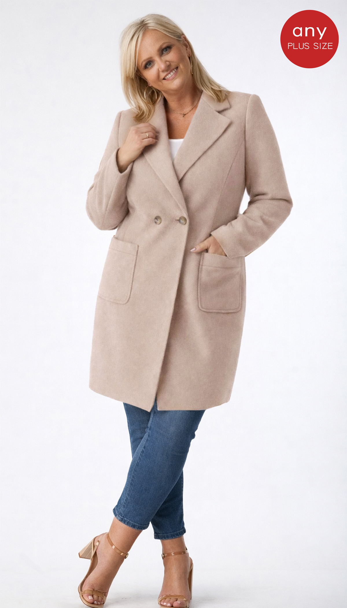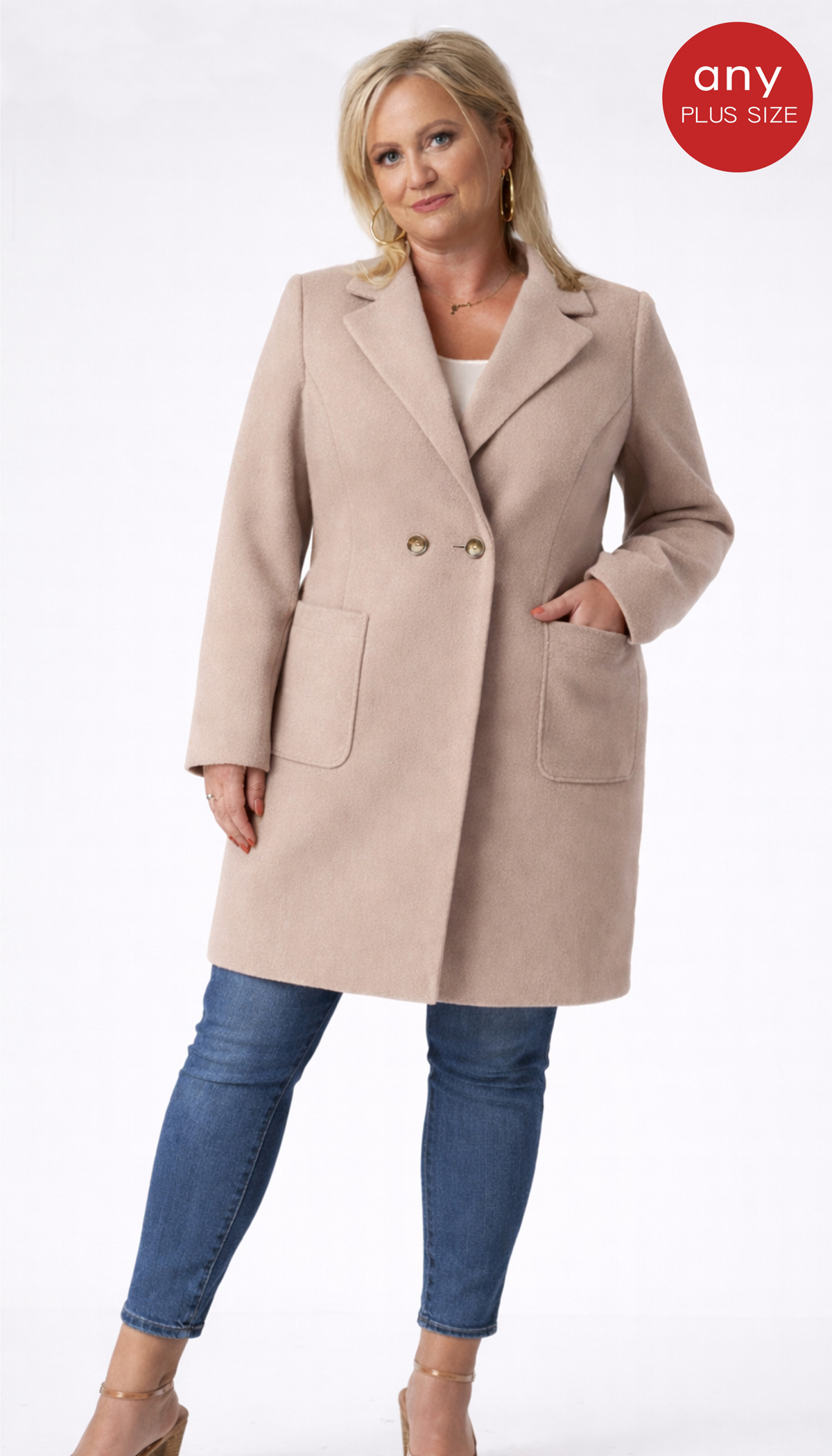 Klasyczny płaszcz flauszowy przejściowy, wiosenny Plus Size 44-54