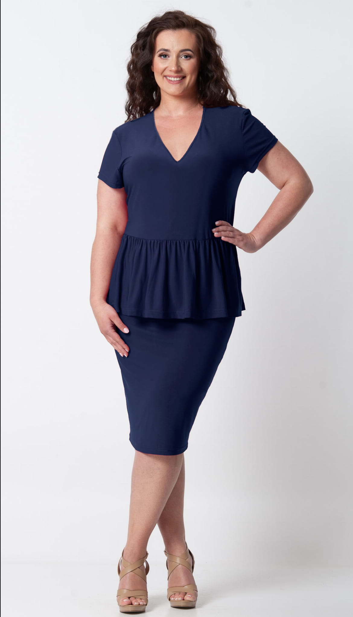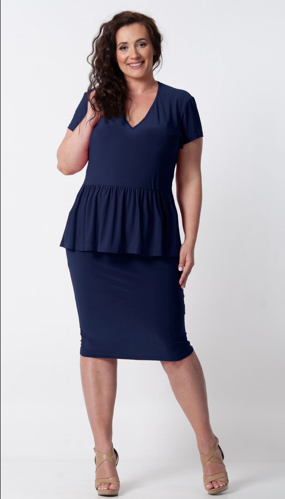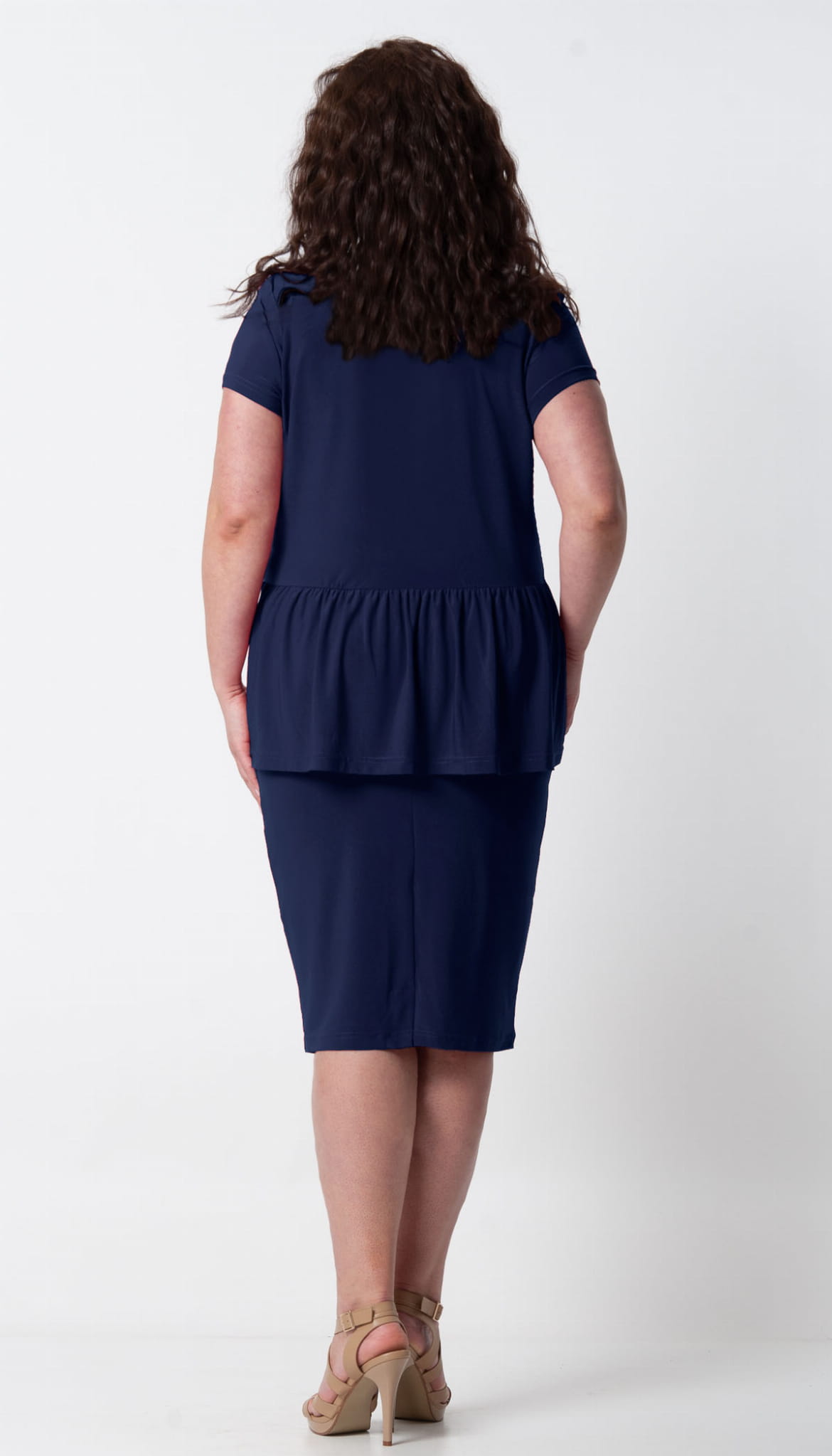 TUSZUJĄCA brzuszek BASKINKA. Komplet bluzki ze spódnicą uszyty z elastycznego, lejącego materiału. Bluzka szersza, nie obcisła, ładnie przytuszuje okolice talii i brzuszka. Ma być luźniejsza. Doszyta delikatna falbanka w kształcie baskinki która całkowicie zasłani okolice brzuszka. Do luźnej góry dołączona dopasowana spódniczka na gumce. Polecamy Paniom z większym brzuszkiem. Skrzętnie zatuszuje mankamenty. Komplet z krótkim rękawkiem. Wygodny i bardzo twarzowy, występuje w kilku kolorach.