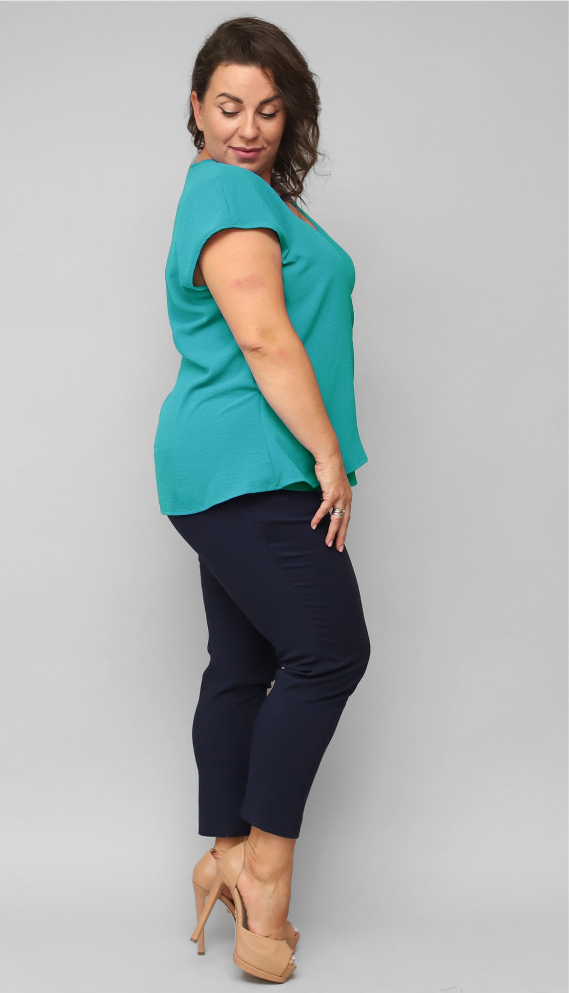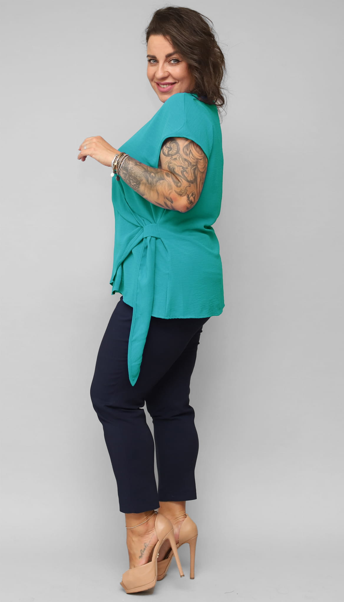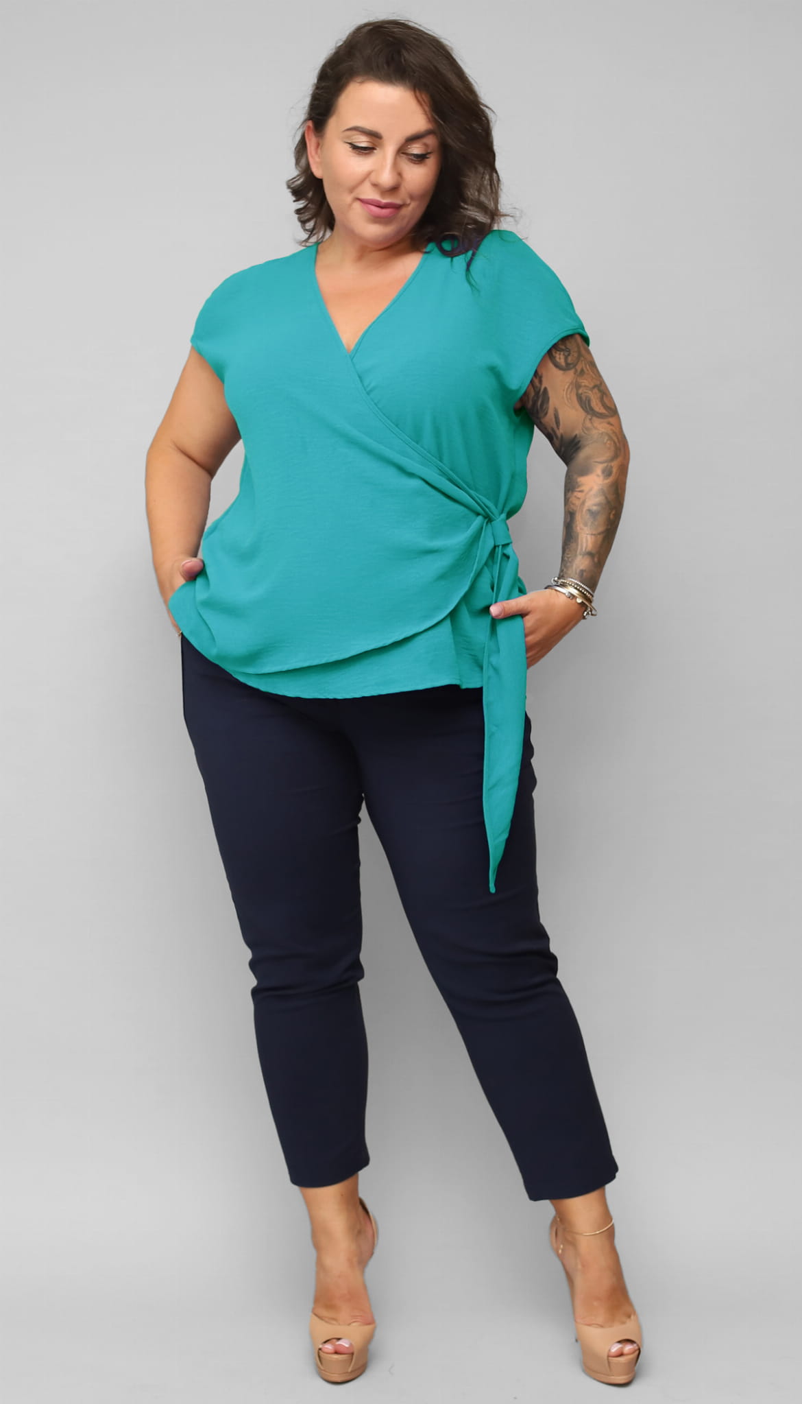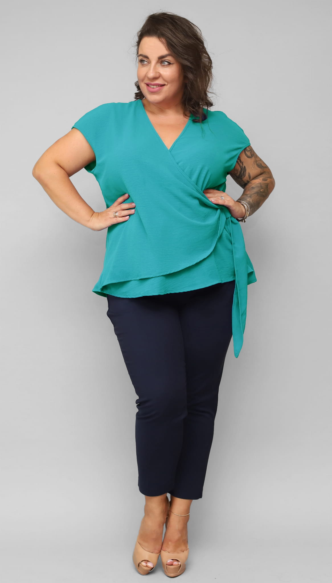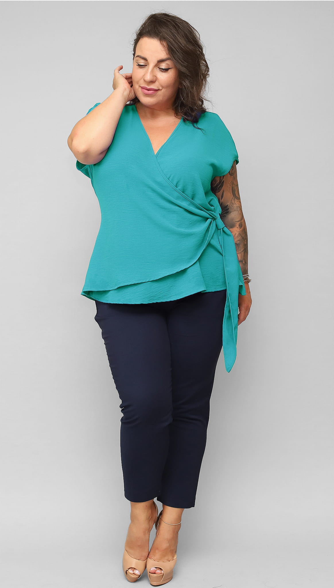 Kopertowa bluzka Plus Size z regulowanym supłem z boku Nela