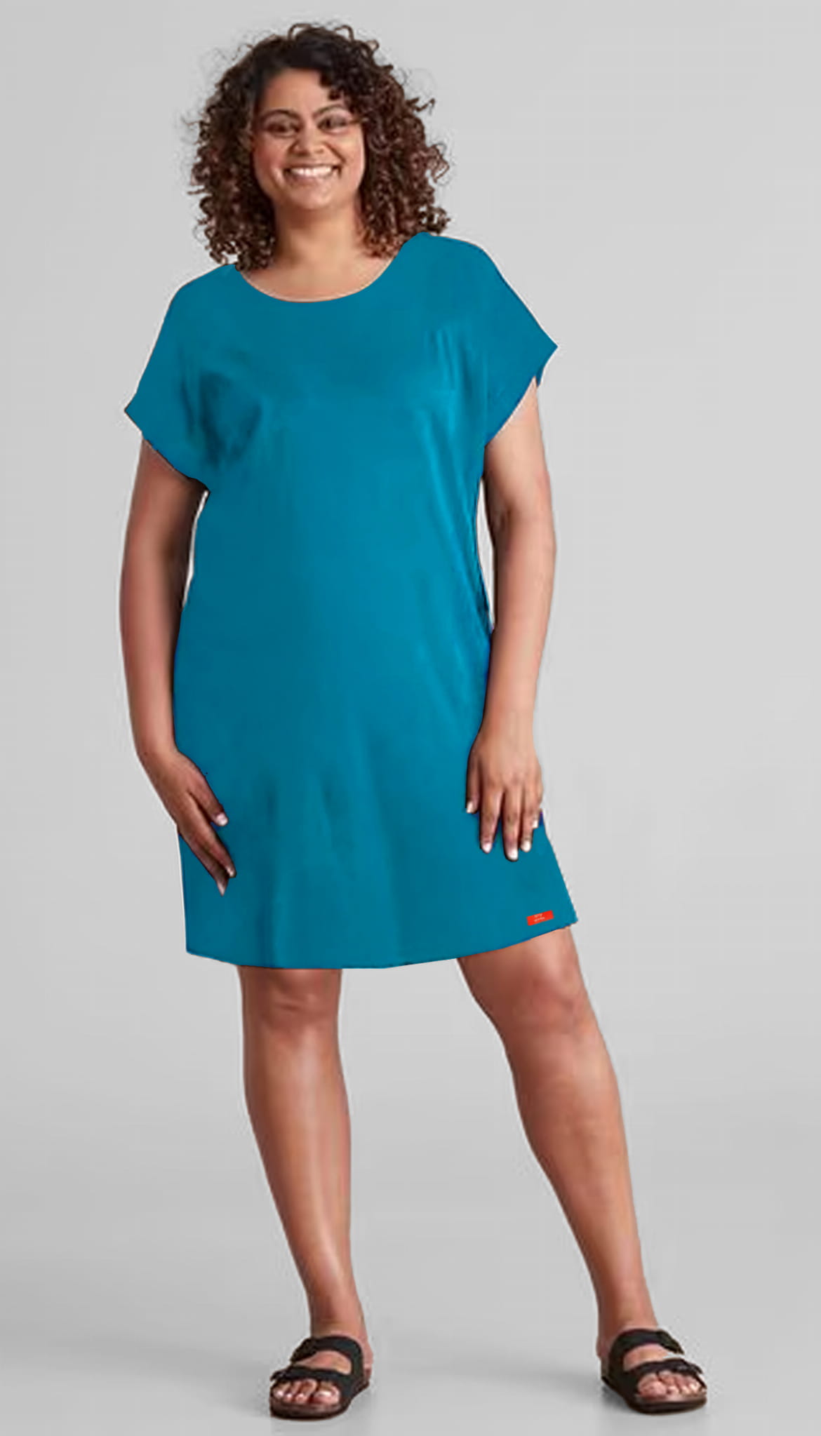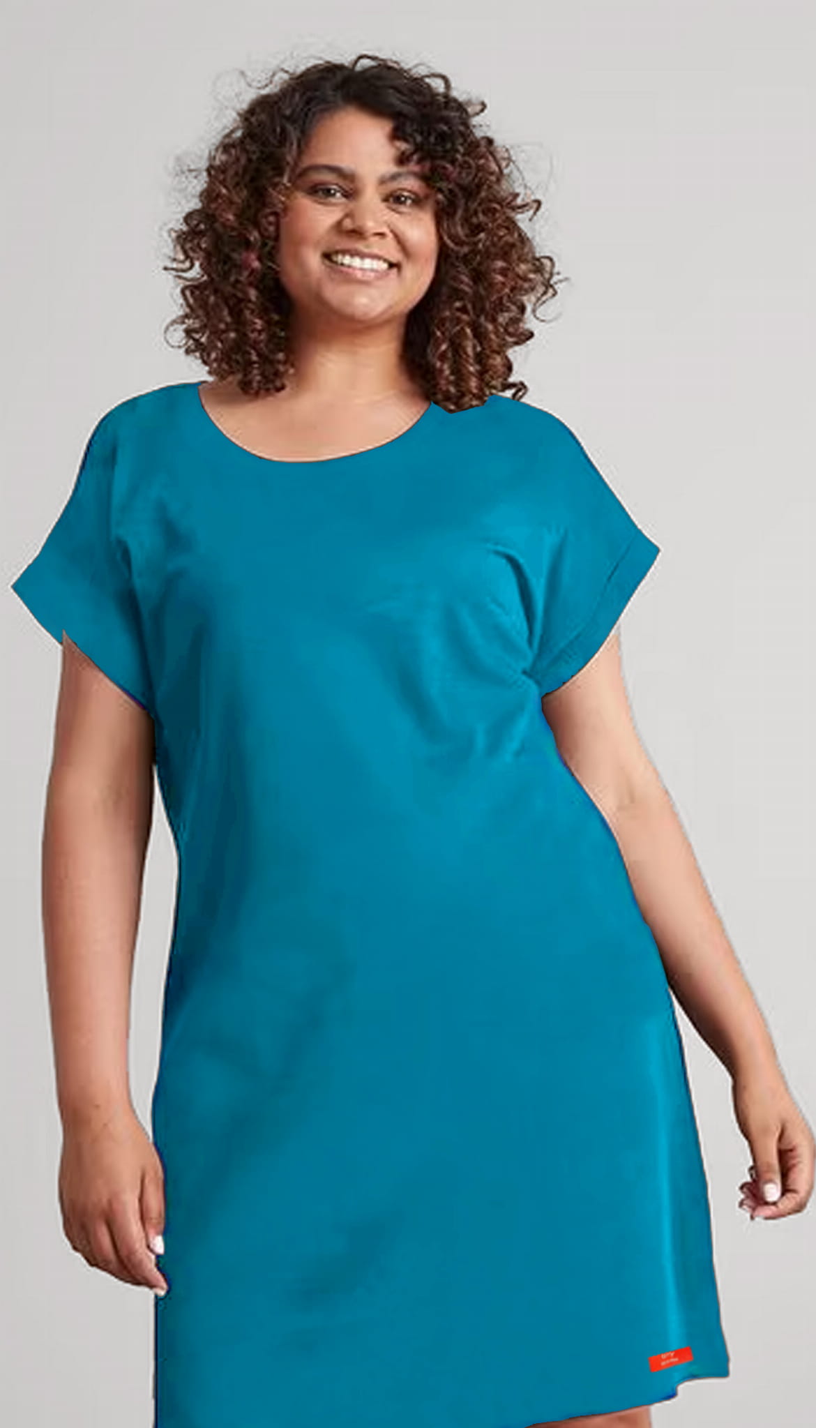 Idealna na ciepłe dni bawełniana sukienka do kolanka. Rękawek z podwinięciem, dekolt większy.