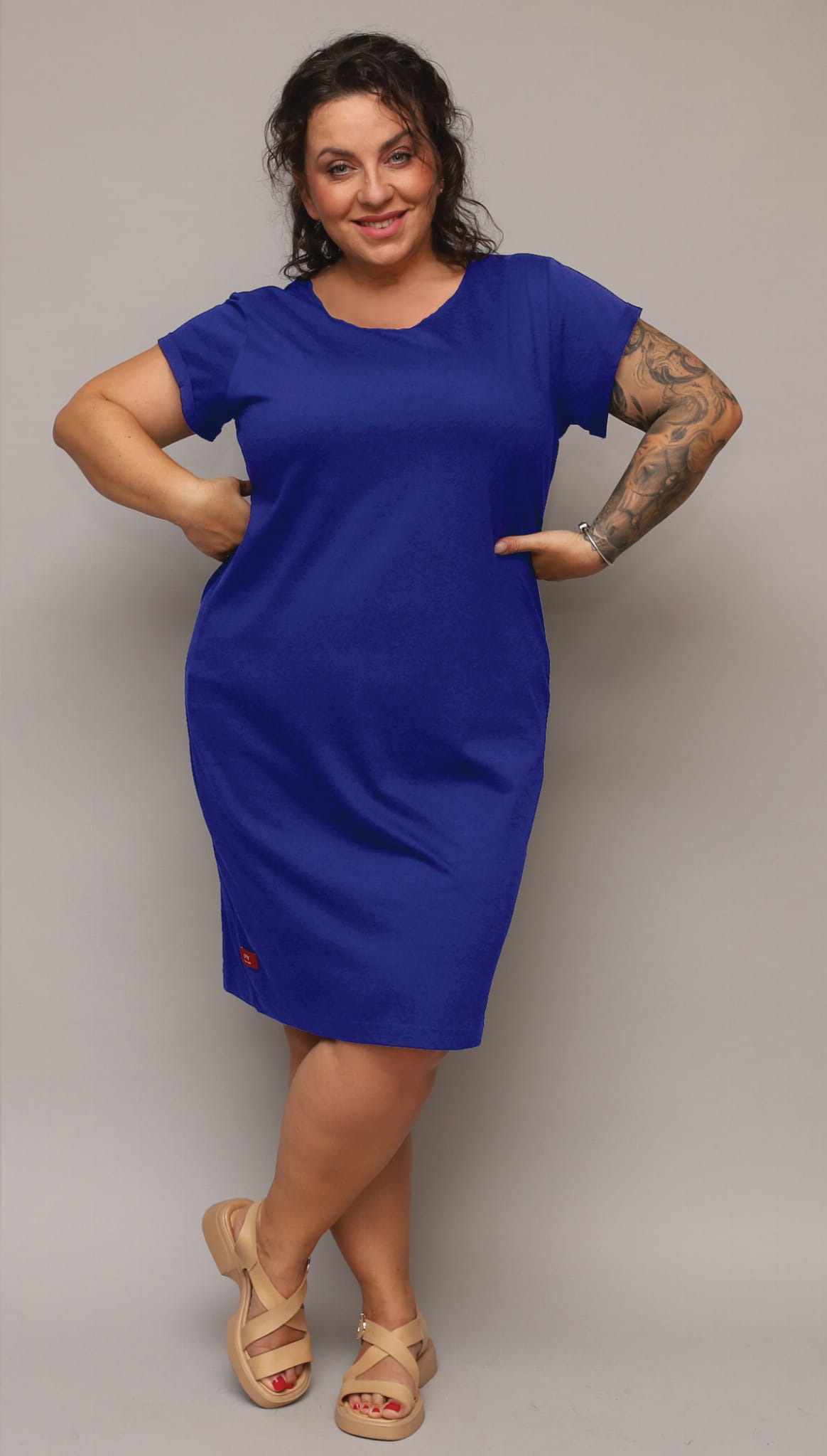 Idealna na ciepłe dni bawełniana sukienka do kolanka. Rękawek z podwinięciem, dekolt większy.