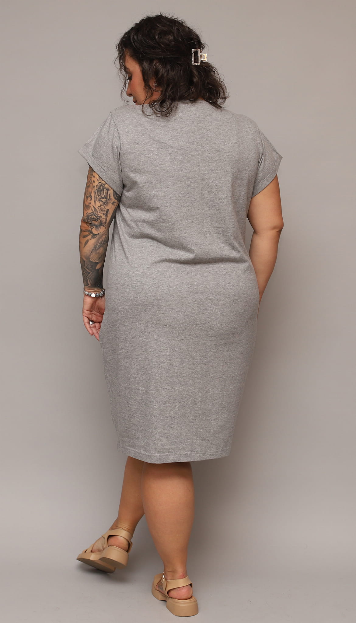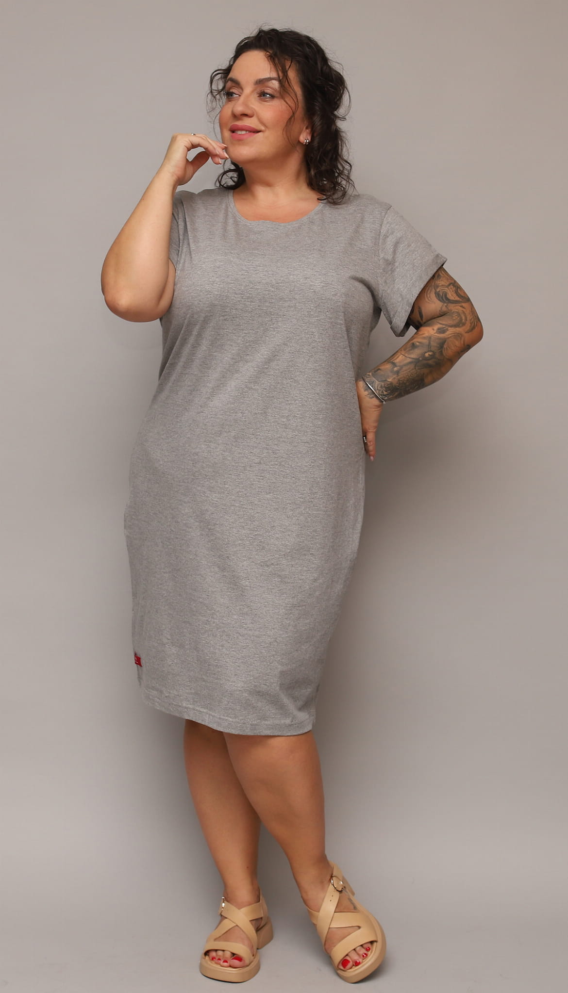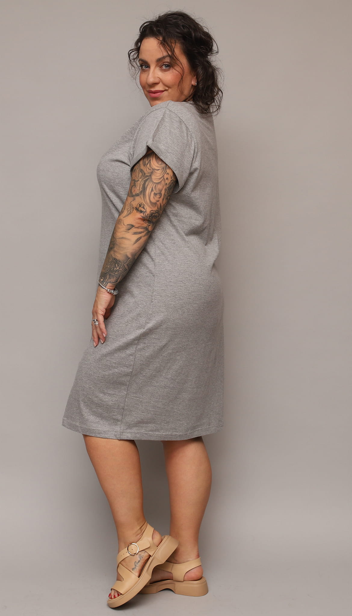 Idealna na ciepłe dni bawełniana sukienka do kolanka. Rękawek z podwinięciem, dekolt większy.