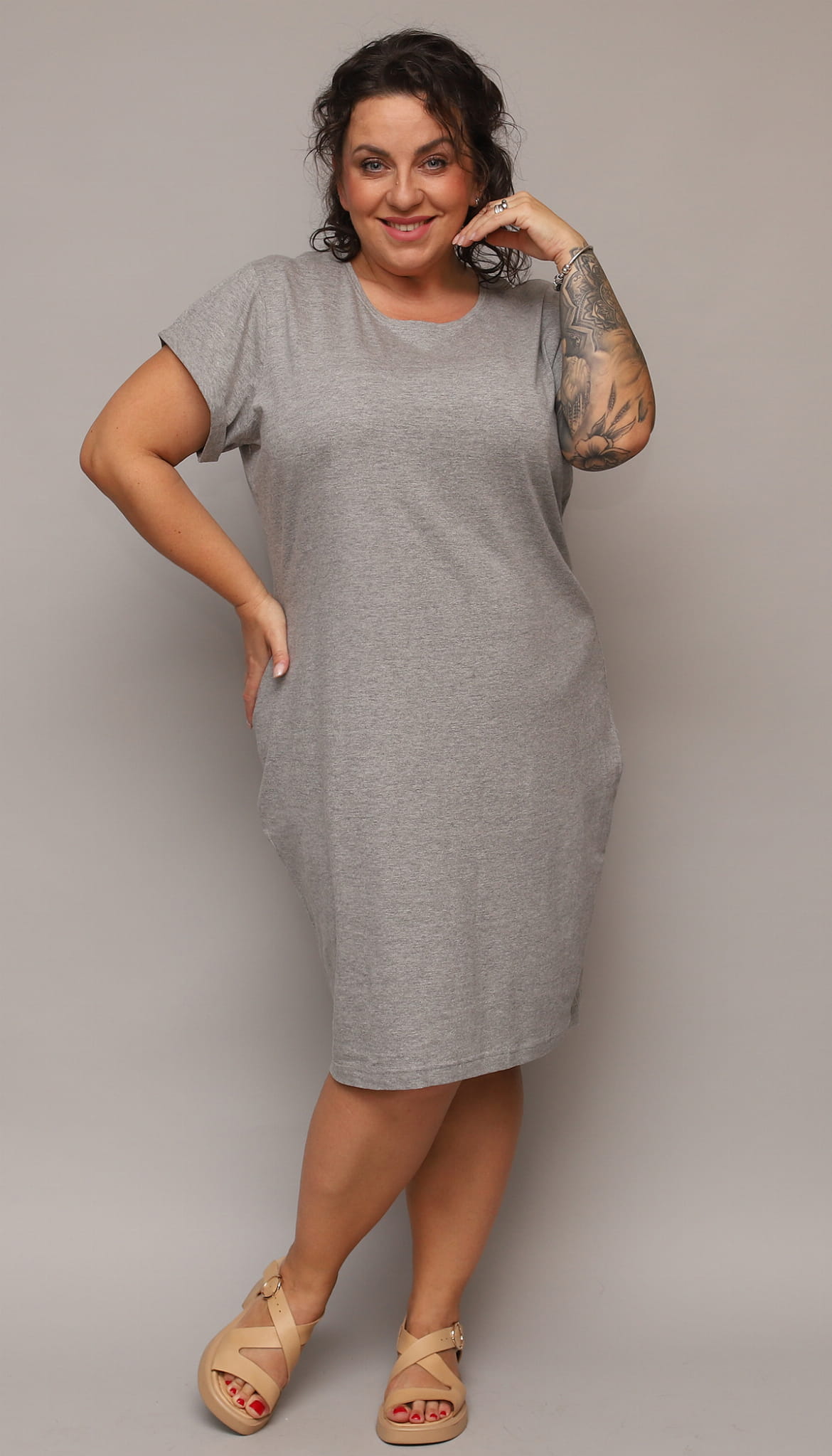 Sukienka dobra dla Pań w większych rozmiarach lekko poszerzna w talii dzięki czemu daje swobodę ruchów i tuszuje niedoskonałości w okolicach brzuszka.