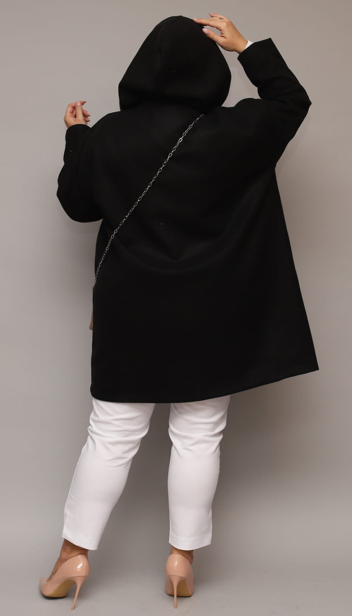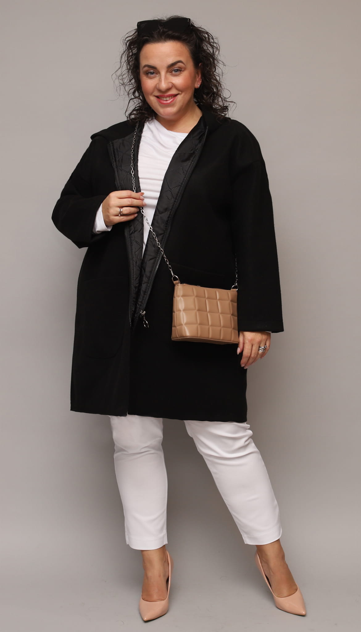 Płaszcz dobry dla Pań chcących ukryć co nieco, krój luźny, nie opinający sylwetki.