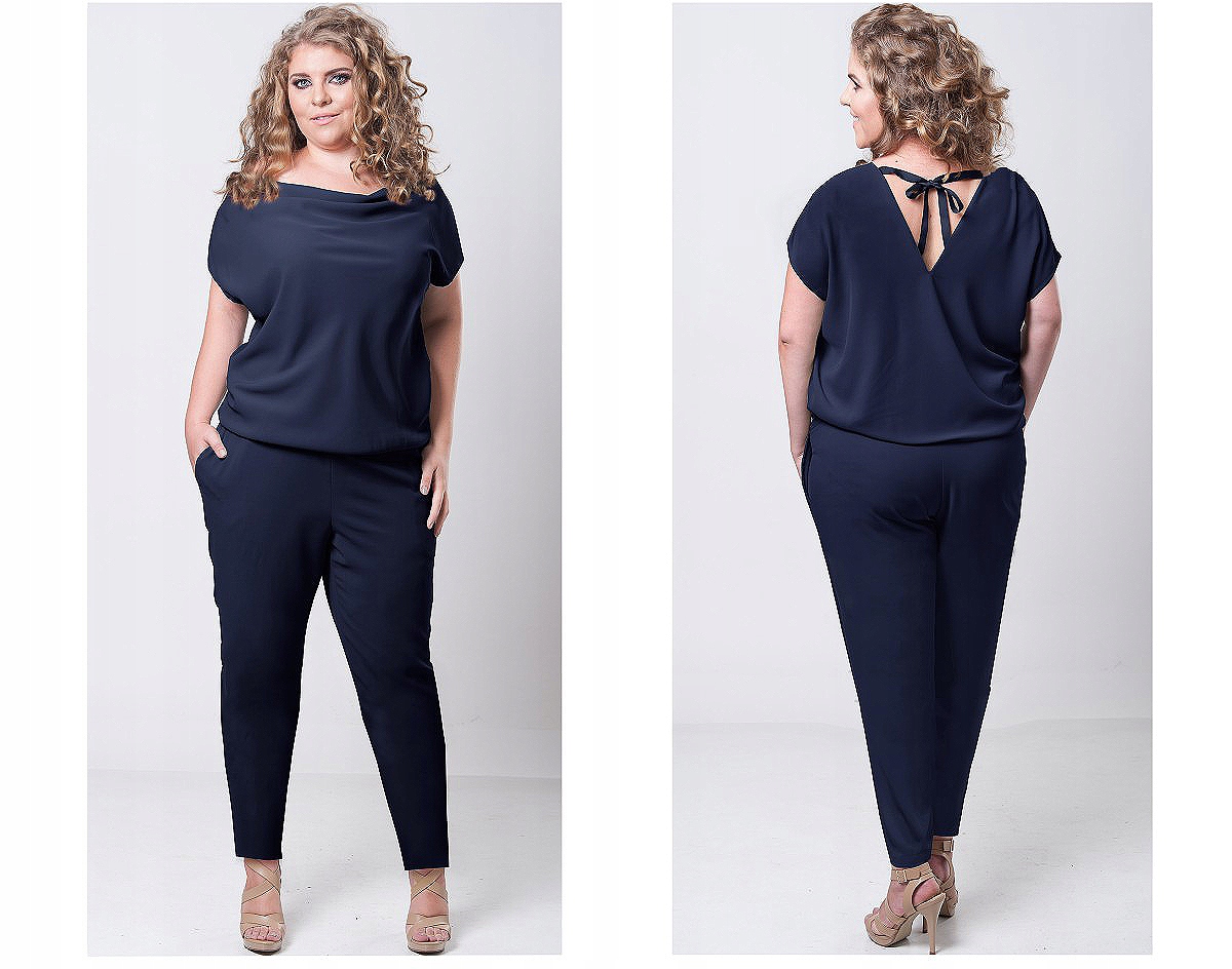 KOMBINEZON PLUS SIZE GÓRA ZE SREBRNĄ NITKĄ, SZYJEMY Z LAMPASEM NA NOGAWCE LUB BEZ LAMPASA