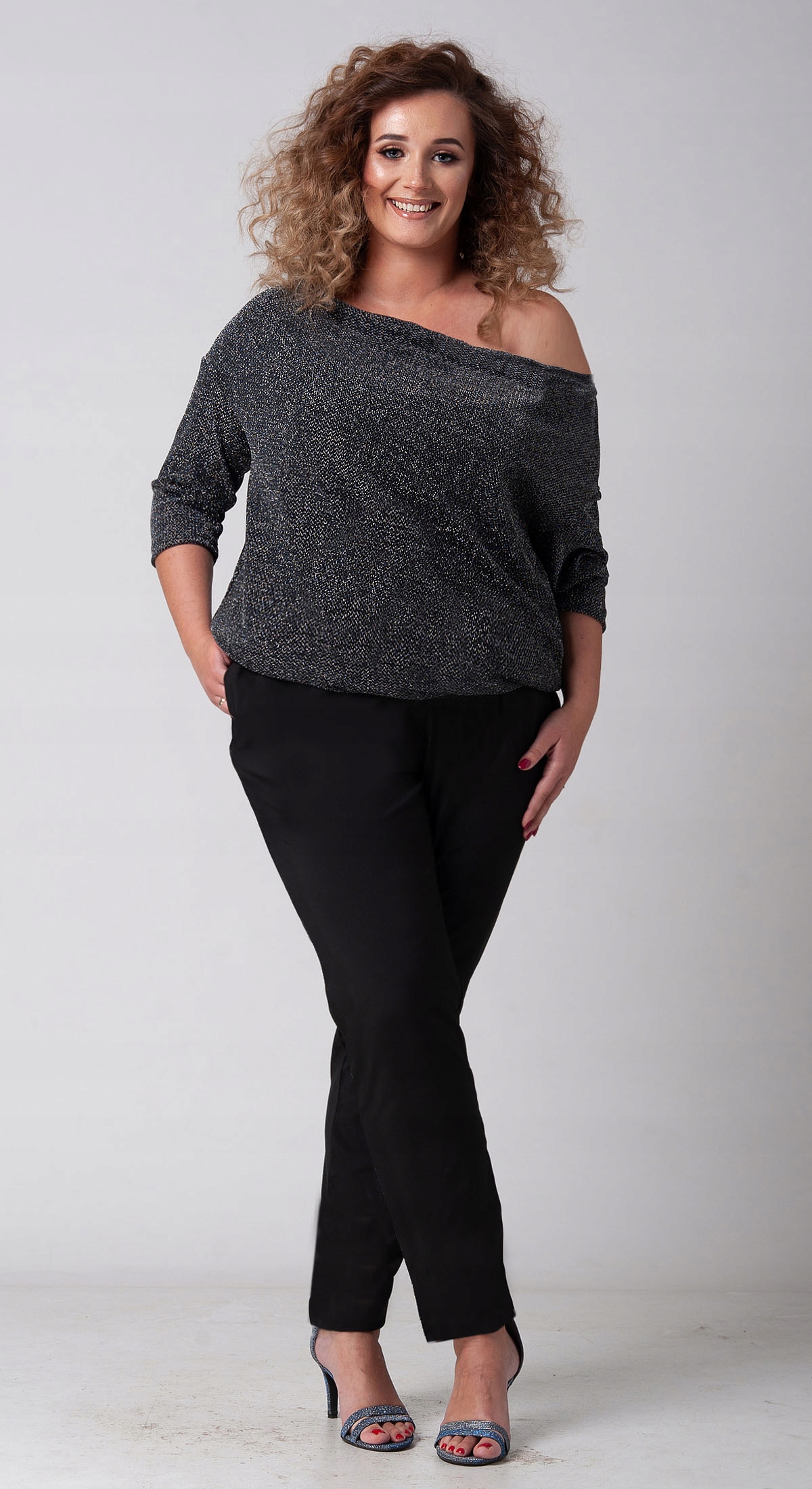 Zbluzowanie w okolicach tali tuszujące niedoskonałości i nadające lekkości.