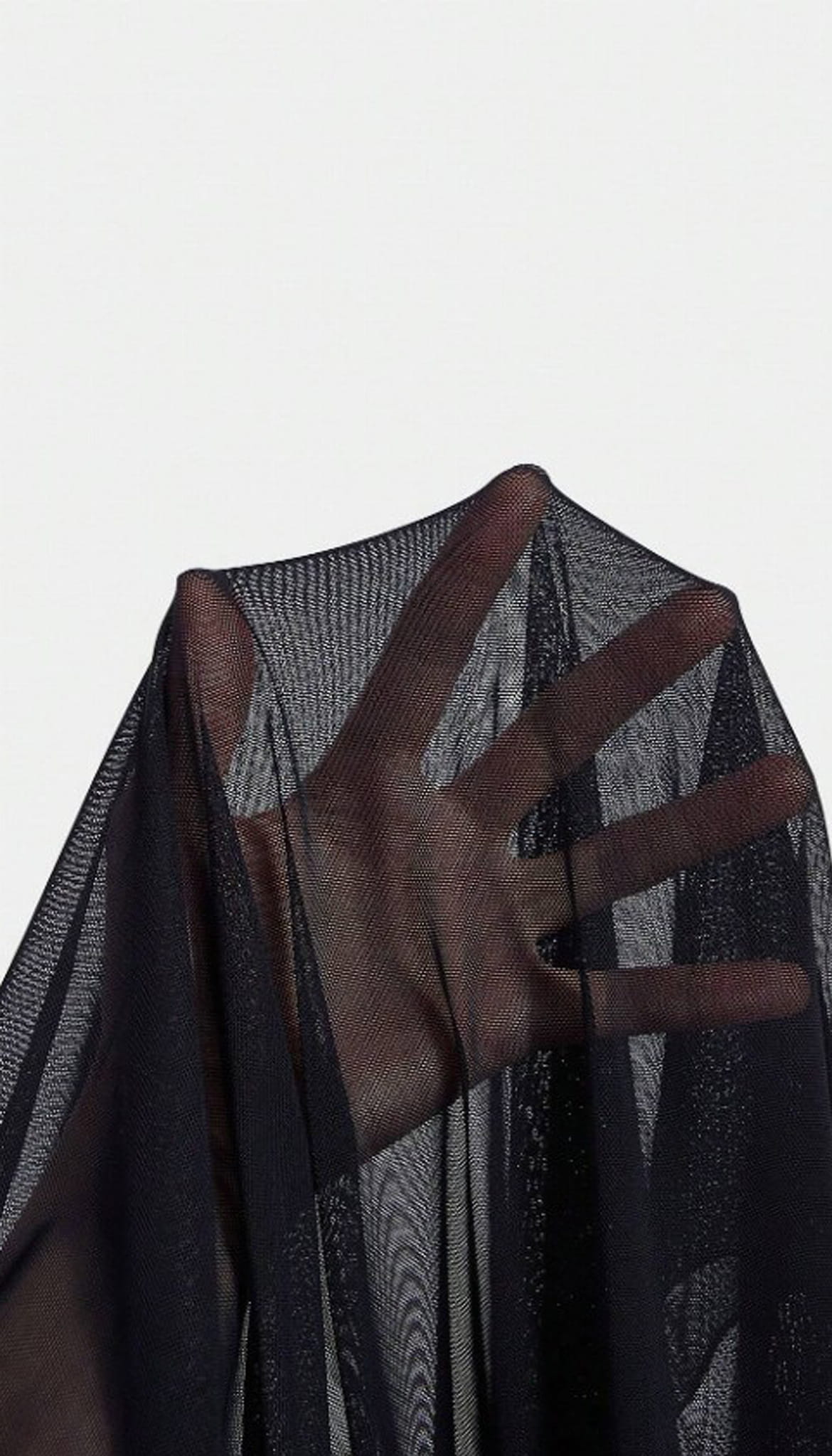 Uszyty z delikatnego lekko przeźroczystego czarnego tiulu z dodatkiem elastycznej koronki.