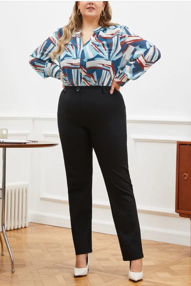Wygodne, mocno uciągliwe spodnie codzienne dla Pani w większym rozmiarze. Z kieszeniami oraz gumą w pasie. Uszyte z naciągającego się materiału. Idealne na każdą okazję. Spodnie z wysokim stanem.